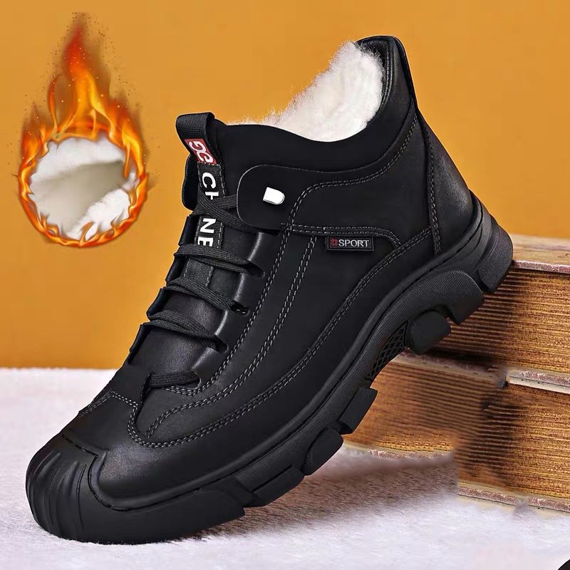 Ciepłe i pogrubione skórzane buty męskie